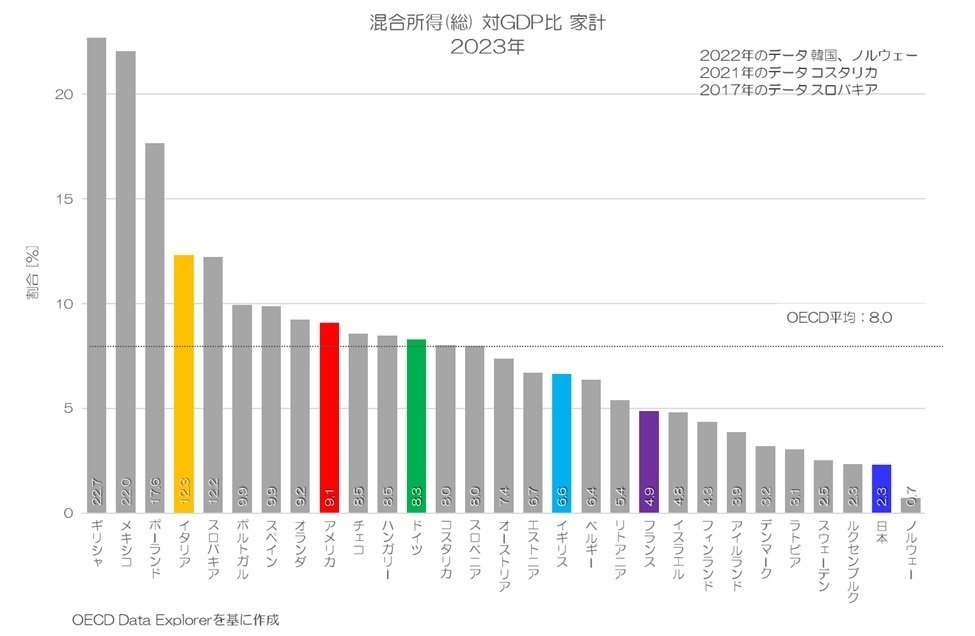 図7 混合所得(総) 対GDP比 家計 2023年