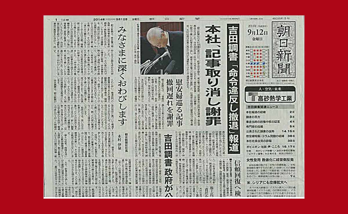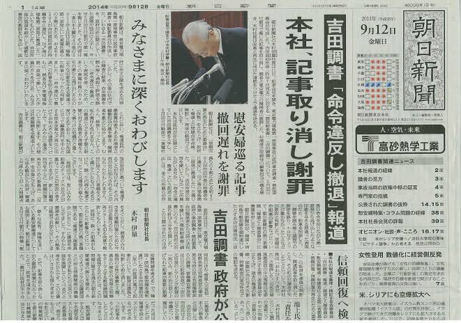 社長の謝罪にまで追い込まれたのが朝日新聞による吉田調書捏造事件でした。
