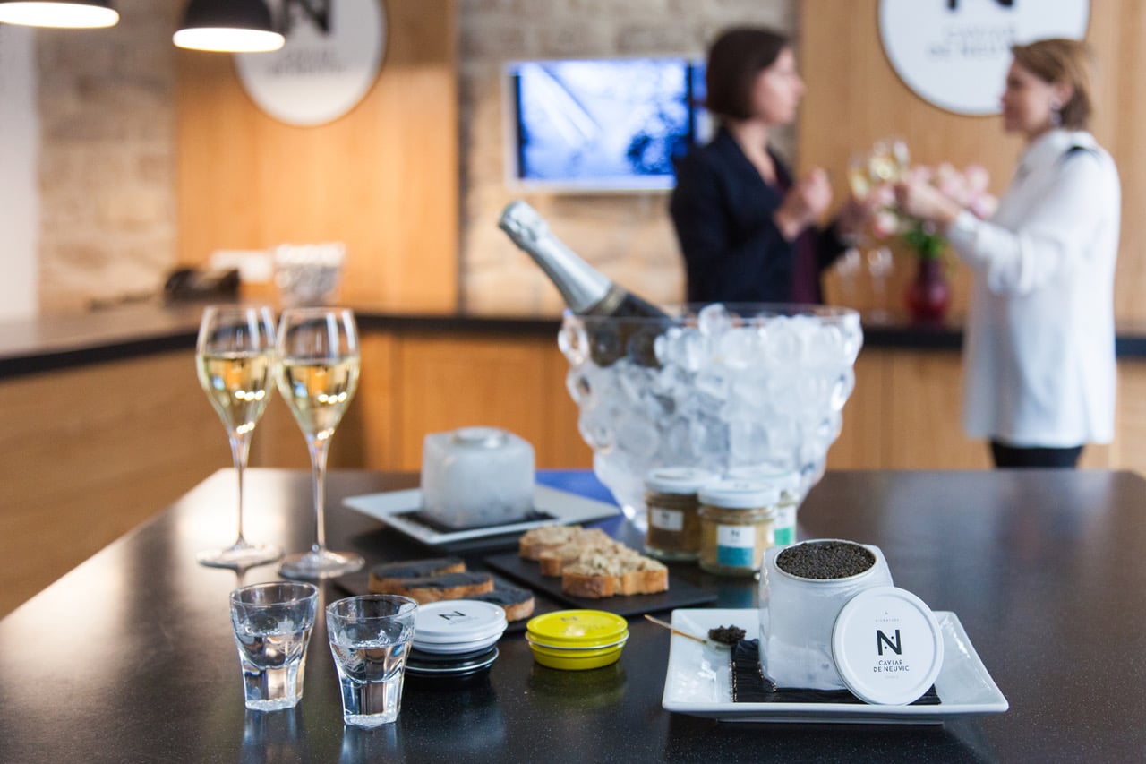 ボルドーから車で2時間ほどかかるため訪れるのは簡単ではないが、パリ中心地にもブティックがあり、豊かな自然の中で大切に育てられたチョウザメが育んだ卵から生まれた「キャビア・ド・ヌーヴィック」の上質な各種キャビアをシャンパーニュやウォトカとともに味わえる。