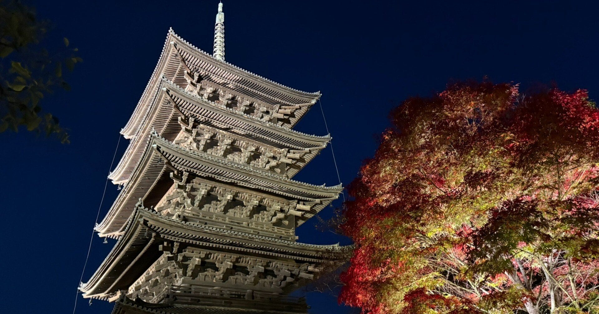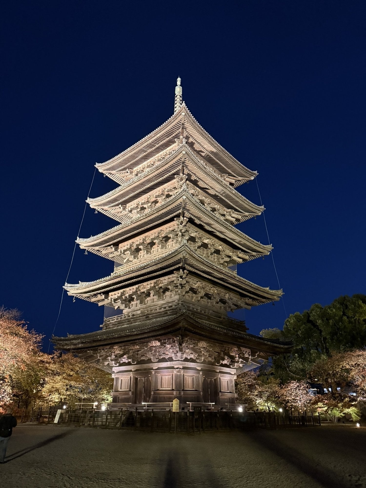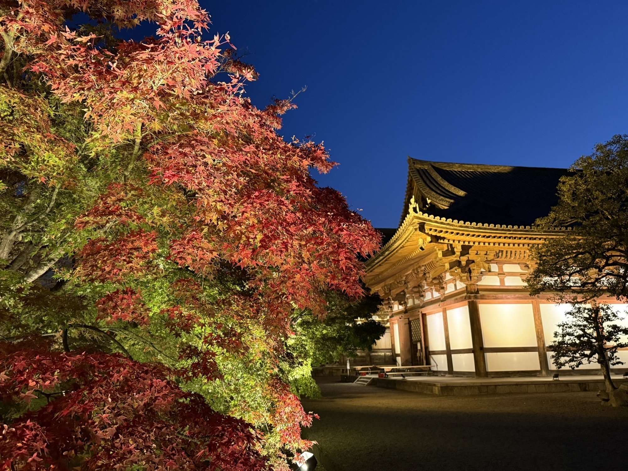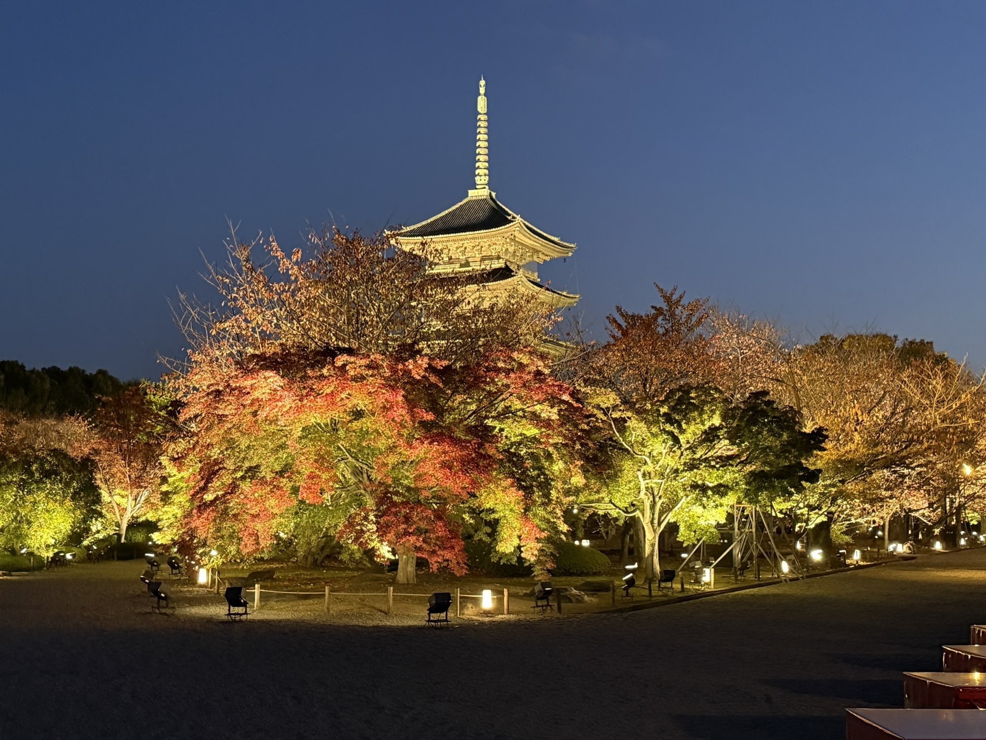 秋の東寺の夜の特別拝観は12月14日まで。写真だけじゃ伝えきれない夜に浮かび上がる古寺の紅の彩をぜひ見ていただきたいと思います。