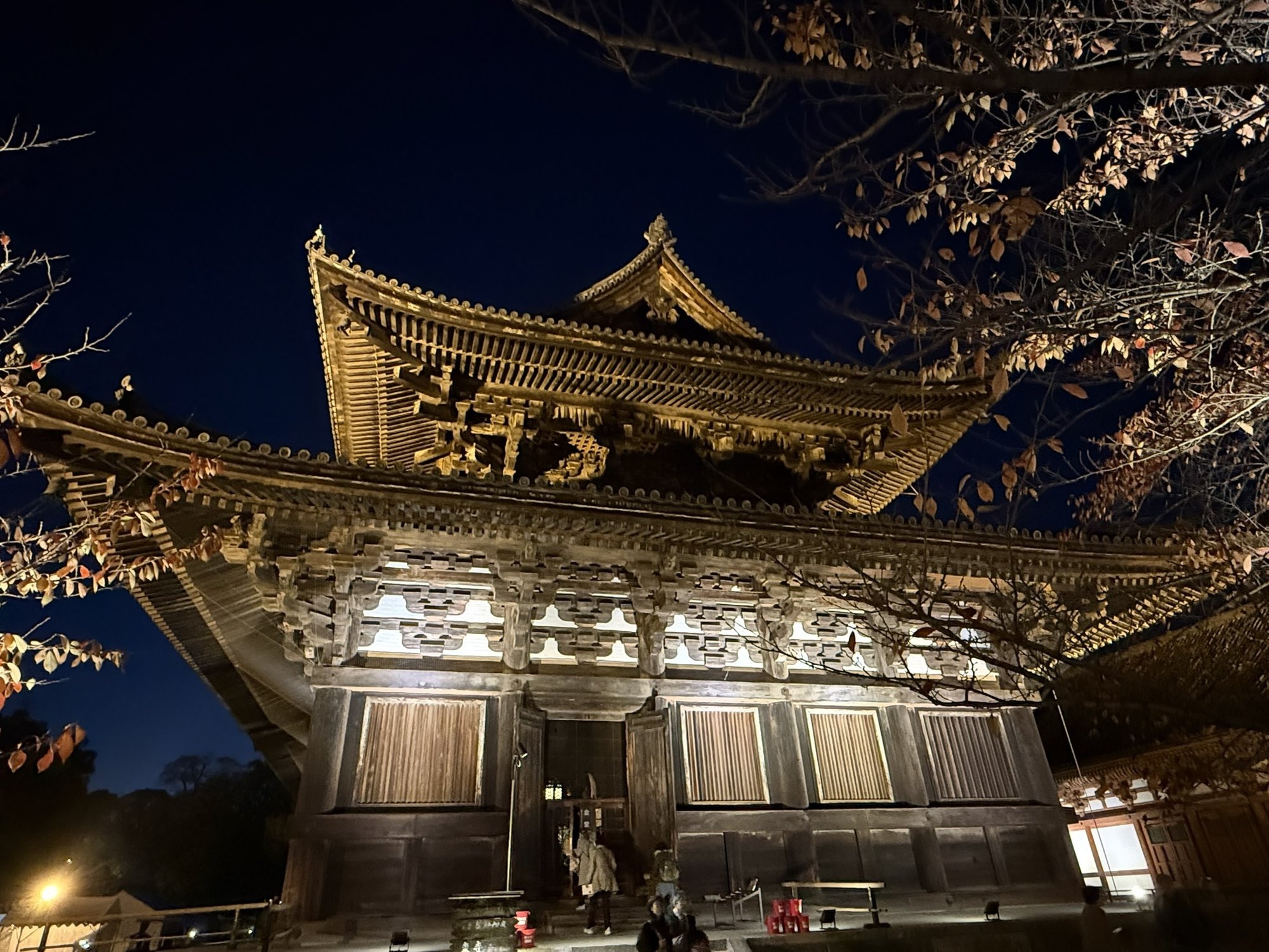 講堂、金堂もライトアップされています。こちらの方でも通常は見ることができない夜の薬師三尊像、立体曼荼羅の姿を見ることができます。