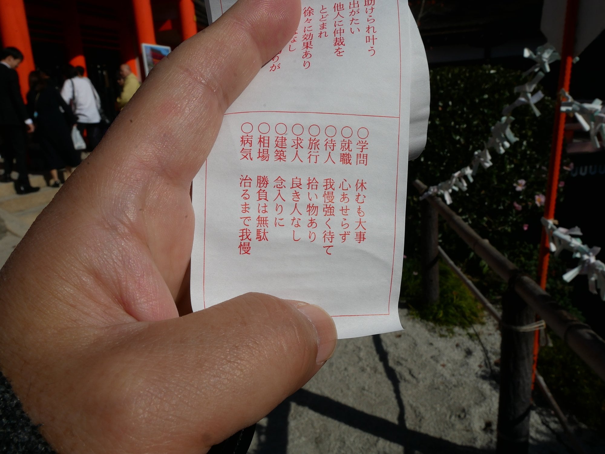 馬がおみくじをくわえている、珍しいおみくじがあったので引いてみました。この馬はご神馬、神山号でしょうかね。