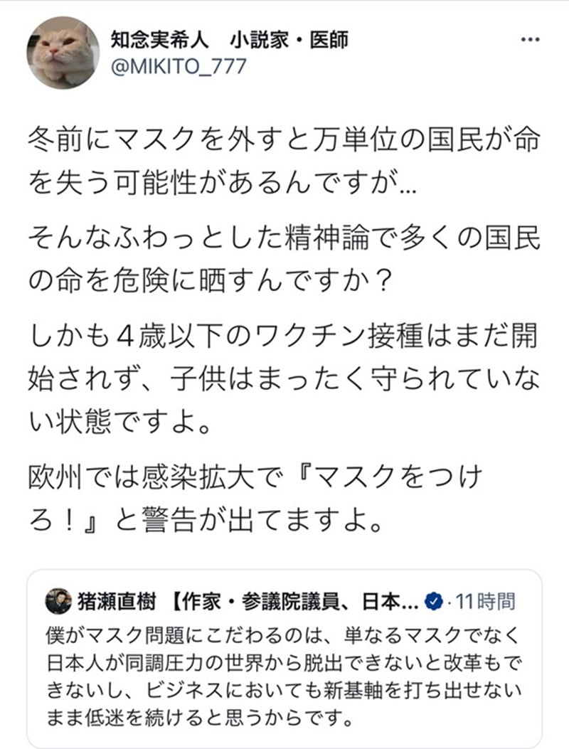 デルタまではまだしも、世界中が規制を解除したオミクロン以降も、医者が脅かしまくってマスコミが視聴率取れるからそれにのり、コロナ脳を増産してポピュリスト政治家がさらに乗って日本の未来をぶち壊したわけです。「経済を厳しく制限した方が回復は早い」とホラを吹いていた医者をテレビやSNSで何人か知っていますが、あんたらは土下座するべきですよ。基礎疾患のある高齢者の寿命を延ばすために未来をぶっ壊したんですから