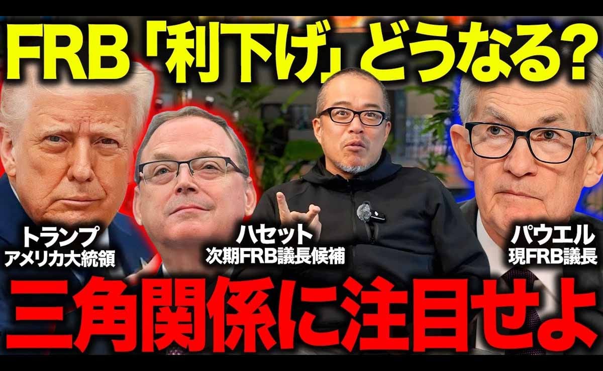 パウエルFRB議長による利下げ発表を目前に控え、その政策が市場の予想以上にタカ派的になる可能性や、次期議長候補とされるハセット氏とトランプ政権との関係性を解説し、FRBの独立性や金融政策の裏側にある人間模様と市場の力学を深く分析します。