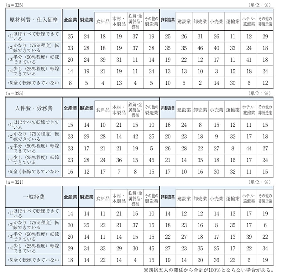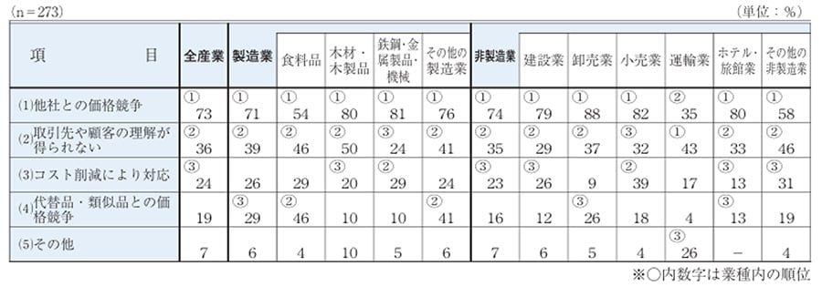 - ① 原料・人件費高などのコスト増を販売価格に転嫁した。