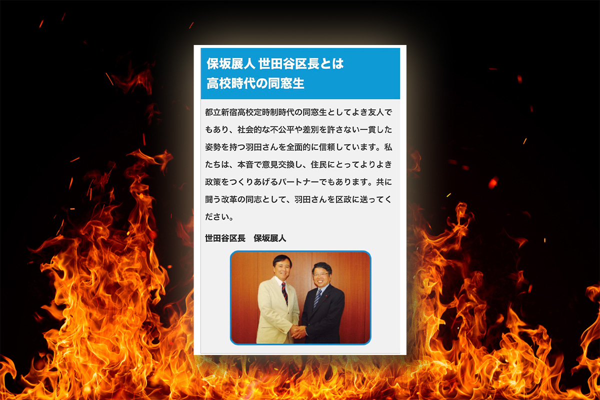 補足すると、羽田副議長と保坂区長は、新宿高校定時制時代の同窓生で、ともに社民党議員でもあった長年の盟友関係にある。立民会派は共産党と同様、区長与党という立場。世田谷区議会がこれまで美風としてきた、議員の発言の自由と議会の公平・中立を守るべき立場にある副議長が、会派幹事長と一緒に他会派を回って、気に食わない議員の質問を問題視する行為は、あまりにも常軌を逸している。このような事例は、全国の自治体を探しても見つからないのではないか。