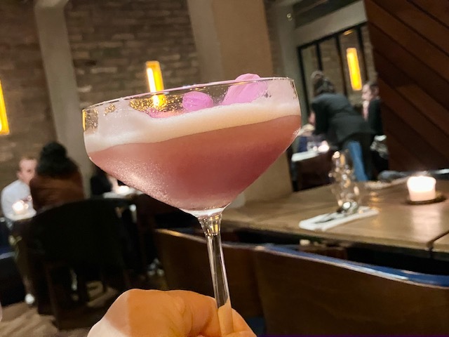 最後の料理は、今夜一番!の、プランテンのガレット&えび&acevichada(ライムやニンニクが効いた日系風ソースらしい)。どれも南米がふわっと香って、コロンビア行ってみたいね!になる味で、カクテルとの相性ピッタリ。