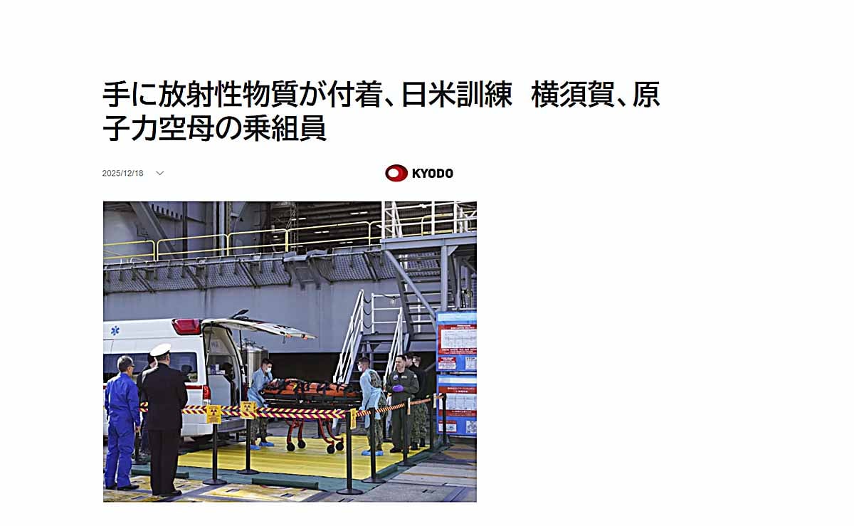 - 共同通信は「手に放射性物質が付着、日米訓練-横須賀、原子力空母の乗組員」とのタイトルで記事を配信した。