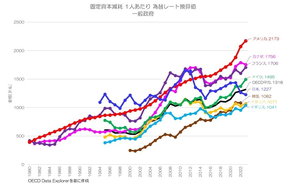 図2が政府の固定資本減耗について、人口1人あたりのドル換算値です。