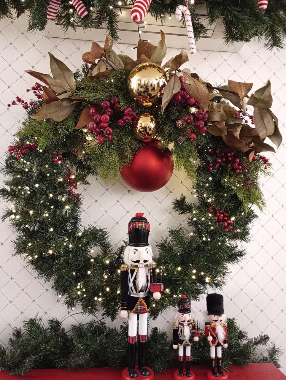 イタリアのベルガモの喫茶店で見たクリスマス用クランツ、2025年12月20日、撮影