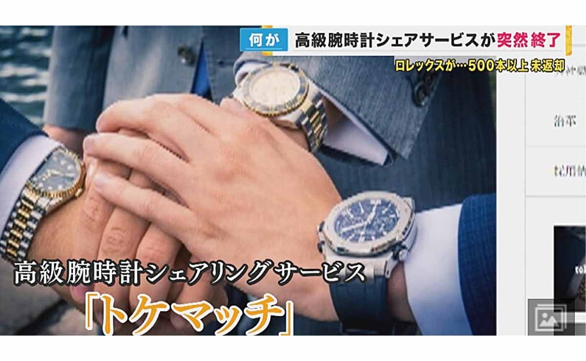 年末の報道番組を見ていたら、トケマッチの首謀者逮捕が報道されていました。トケマッチとは高級腕時計のレンタルサービスを提供していた会社が、所有者から預かった時計を返却することなく、転売してトラブルになった詐欺事件のことです(写真はテレビ局のサイトから)。