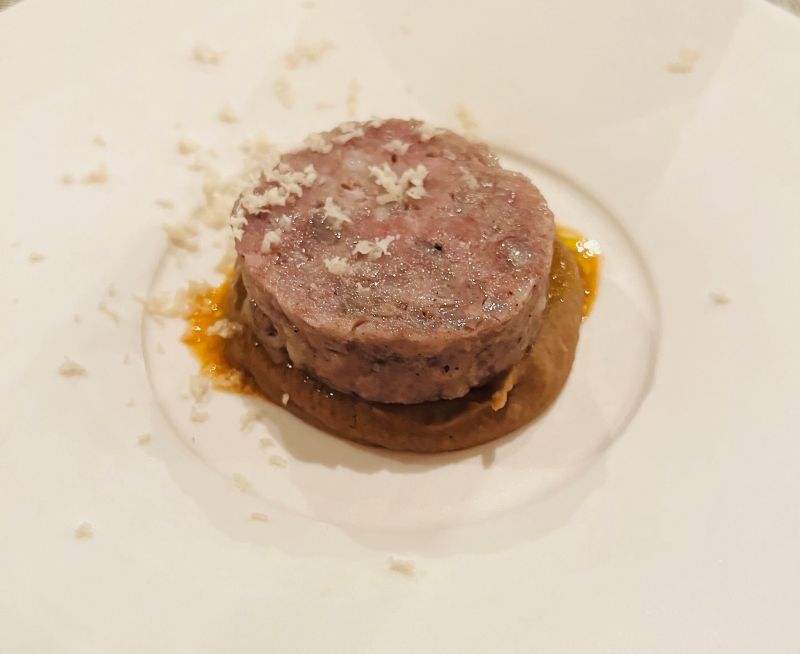 自家製コテキーノは、イタリア北部のお正月料理。少しエキゾチックで、どこか中華を思わせるスパイスの香り。下に敷かれたレンズ豆はコインに似た形から「お金持ちになるように」という願いが込められているそうで、日本のおせちと重なり、思わず頬がゆるみます。