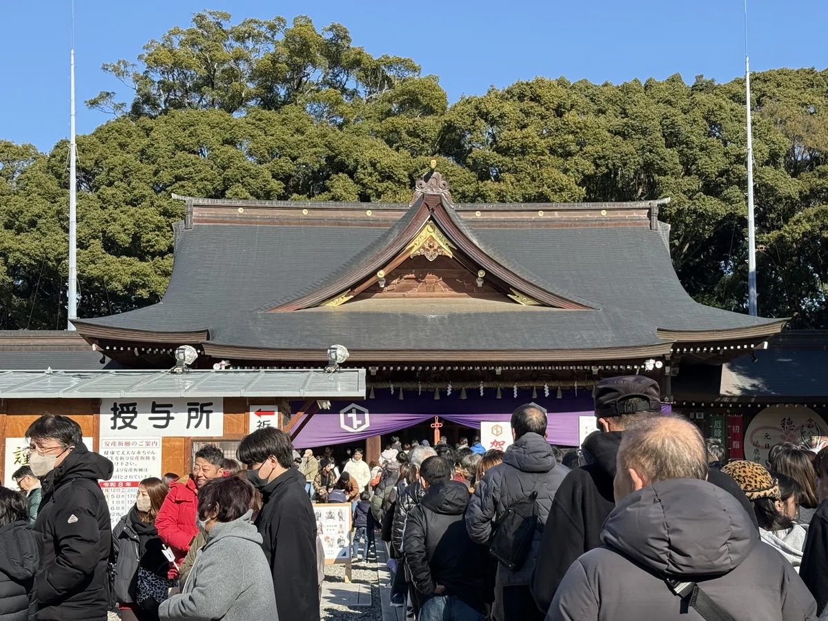 豊川市といえば、日本三大稲荷である豊川稲荷が有名です。みんなそっちに行っているかと思いきや、こちらも結構な賑わい。車で来たんですが、目の前の道路も大渋滞で車を停めるのにかなり時間を要しました。JR飯田線の三河一宮駅からも近いので電車で行くのもいいと思います。