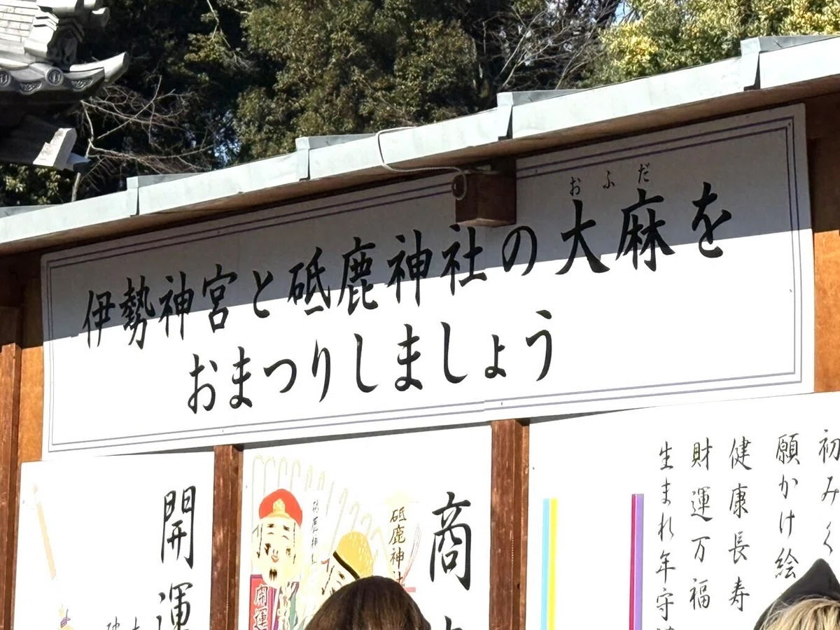 「大麻」と書いて「おふだ」。フリガナを振っていないと誤解しそうですね。伊勢神宮の内宮のご神徳を全国の神社を通じて頒布される神札で、お札の中でも特に格式の高い特別な存在です。麻は生命力に優れ、しめ縄にも使われてきた神聖な存在であることからその名がついたとされています。現代の意味合いとは全く違うんですね。新年早々勉強になります。