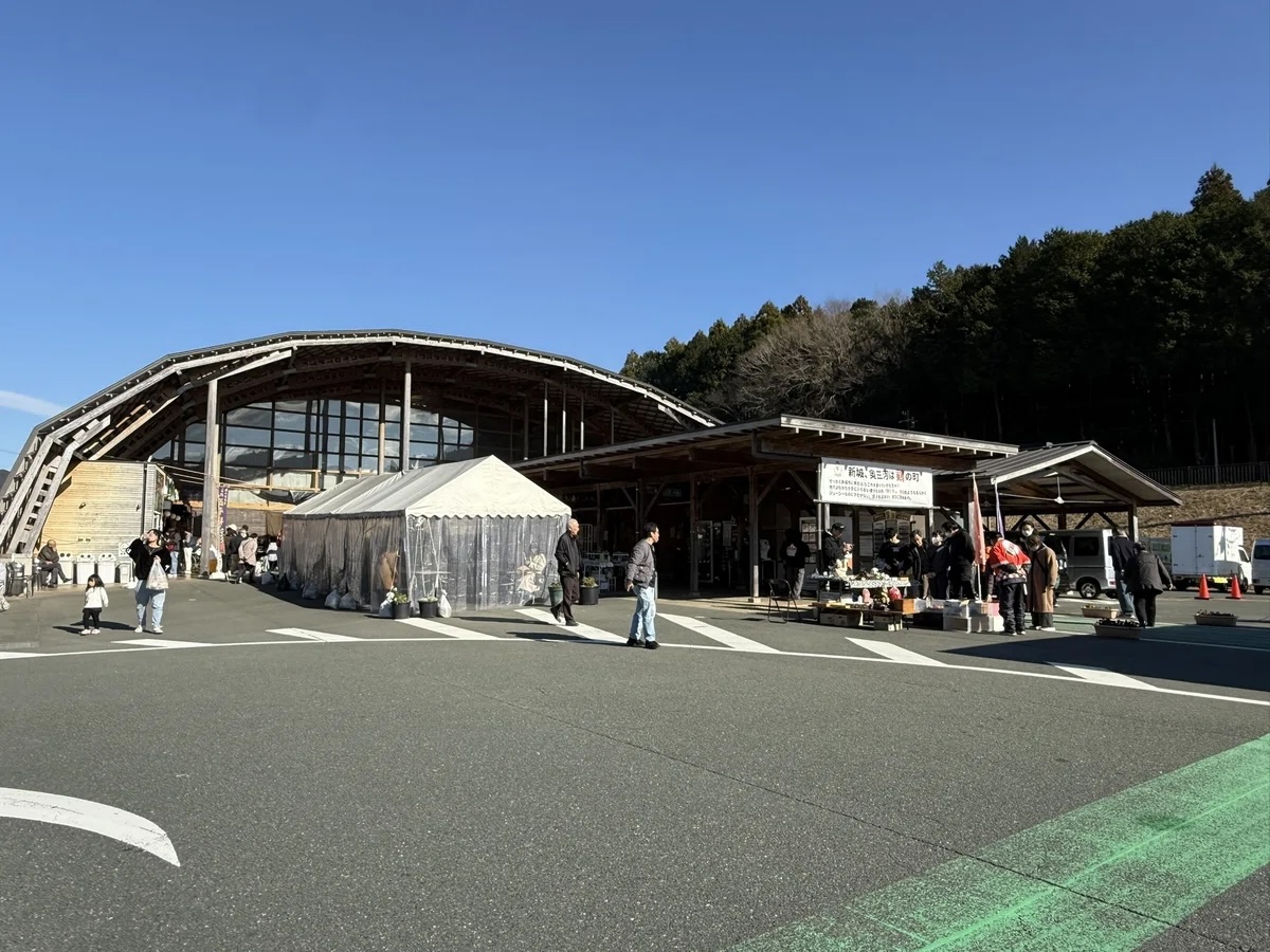 非常に混雑していたので神社は初詣を済ませて早々に辞去して、新城インターのすぐ近くの道の駅「もっくる」に来ました。正月も帰省で移動する人たちのオアシス的存在。インターを出たところにありますが、ETC2.0なら高速料金は通算して計算されます。高速バスの休憩所としても利用されているようです。