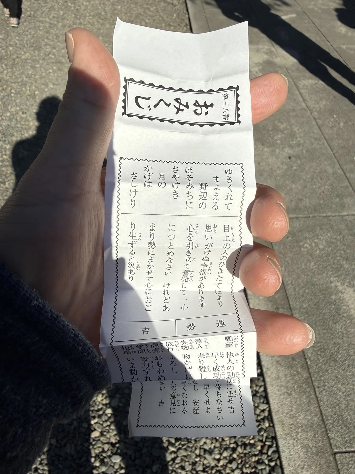おみくじは吉でした。昨年は高尾山で凶を引き、そのあとなかなか大変な試練を味わいました。もちろんおみくじで何かが変わるわけではありませんが、気持ち的に少し安心します。気を引き締めていこうと思いました。