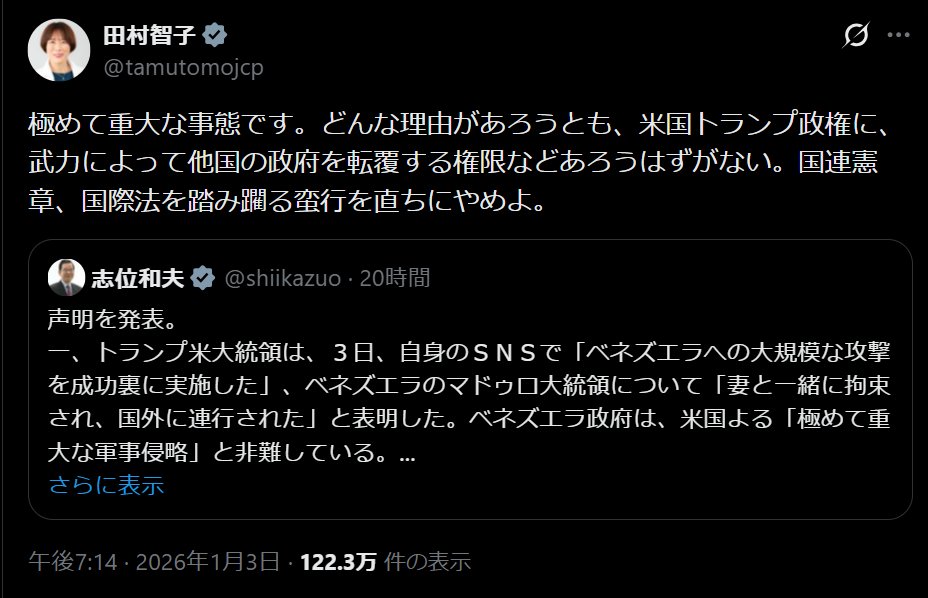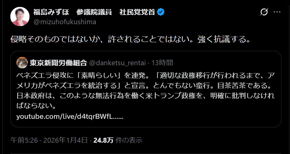 米国によるマドゥロ夫妻拘束を批判している左巻きの人達は