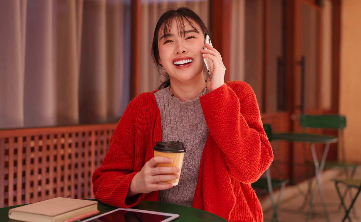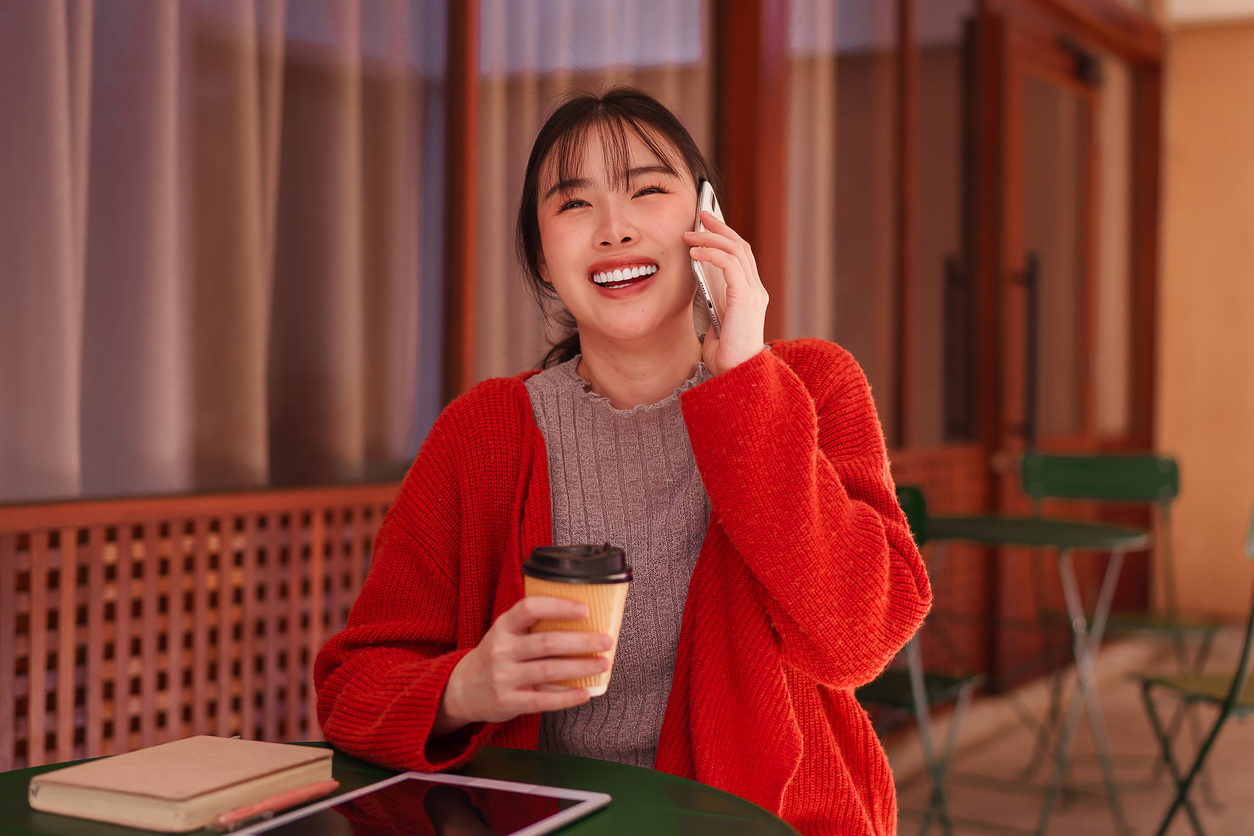 カフェの店内では携帯電話をかけたりズームミーティングをしたりはしない。