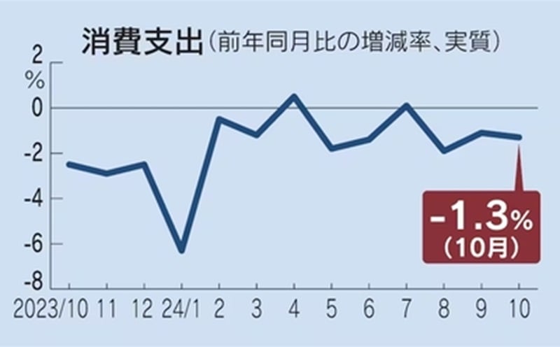 10月の実質消費支出1.3%減 3カ月連続マイナス