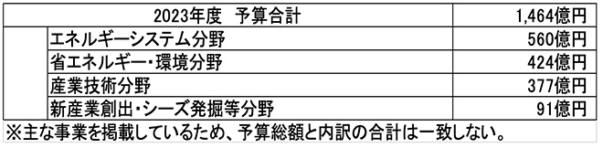 表1はNEDOのサイトで公開されている2023年度(令和5年度)の予算である。1,464億円でも、十分大きな金額であるといえる。