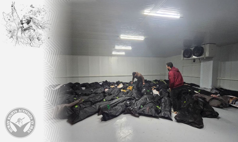 イラン治安部隊に殺害された抗議デモ参加者の遺体が横たわっている、HRANA公式サイトから