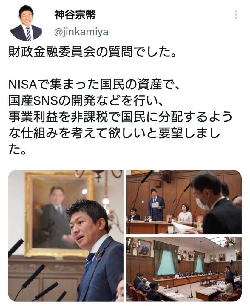 神谷宗幣は過去に国会でNISAで集まったお金を
