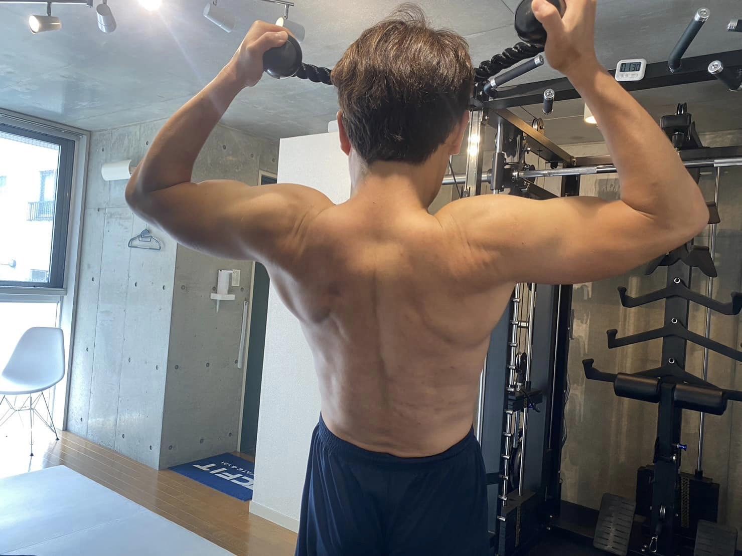 私は毎日平均1万歩のウォーキングを心がけるとともに、週1回はパーソナルトレーニングに通い、筋力の維持向上を目指しています(写真は3年前のパーソナルトレーニングの時のものです)。