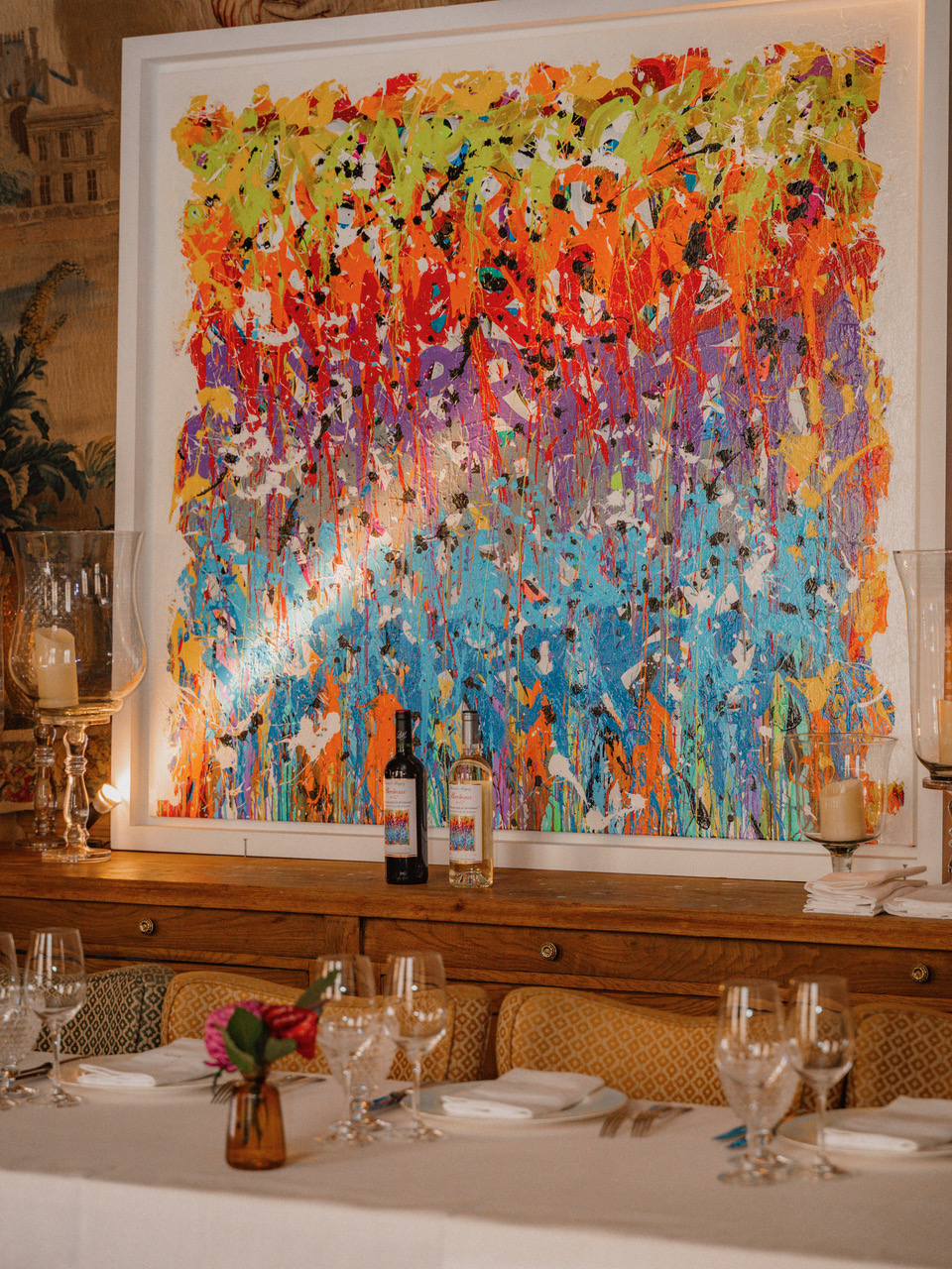 エチケットのデザインの元になった、JonOneによるドリップペインティングのアート作品。