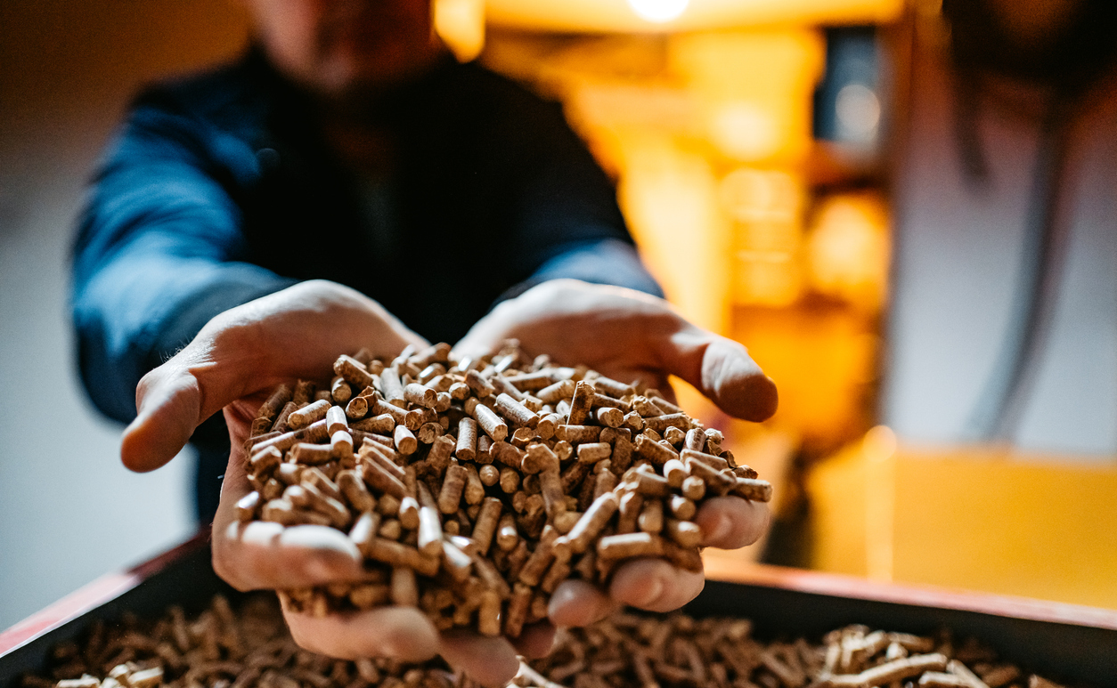 実際に発電に用いられる木質バイオマスは、自然乾燥や強制乾燥、ペレット化といった工程を経て、含水率5〜10%まで下げられている。