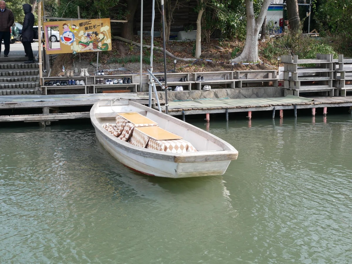 駅から数分ほど歩くと遊覧船乗り場があります。柳川は「水郷のまち」として知られ、「掘割」と呼ばれるこのような水路が街中に張り巡らされています。