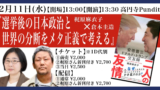 26年2月11日(祝日・水・昼)梶原麻衣子×倉本圭造『選挙後の日本政治と世界の分断をメタ正義で考える』