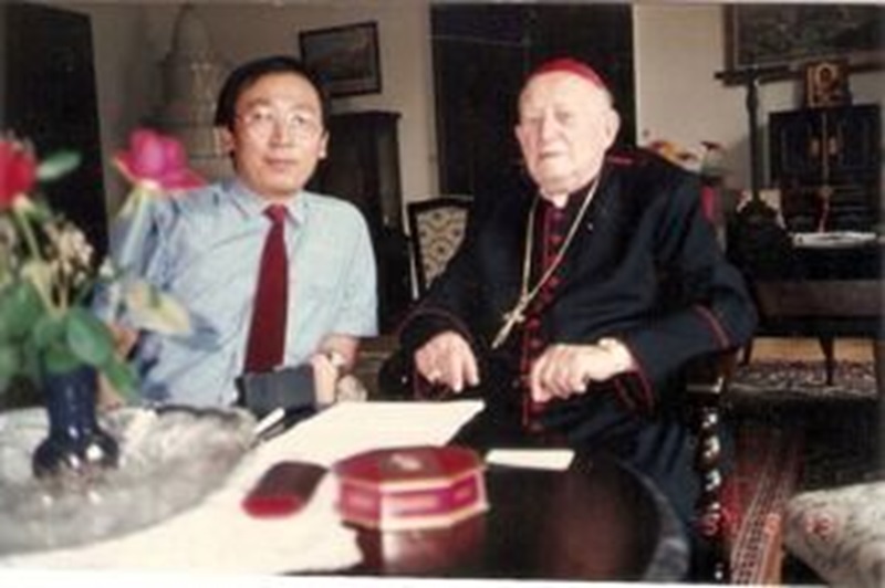 冷戦時代のチェコのカトリック教会の最高指導者トマーシェック枢機卿との会見(1988年8月 プラハの枢機卿公邸で)