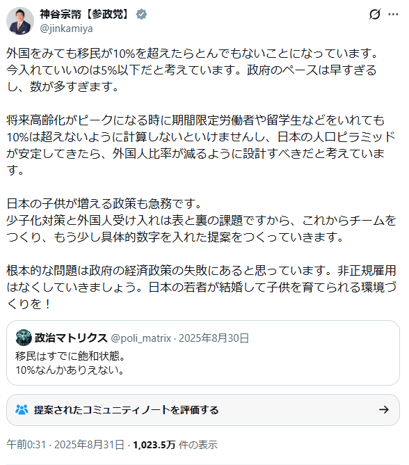 この後に及んで、移民を増やそうとしている自民党を支持されているのは、だいぶ浅はかでは?