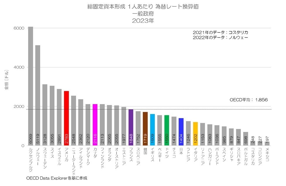 図3 総固定資本形成 1人あたり 一般政府 2023年