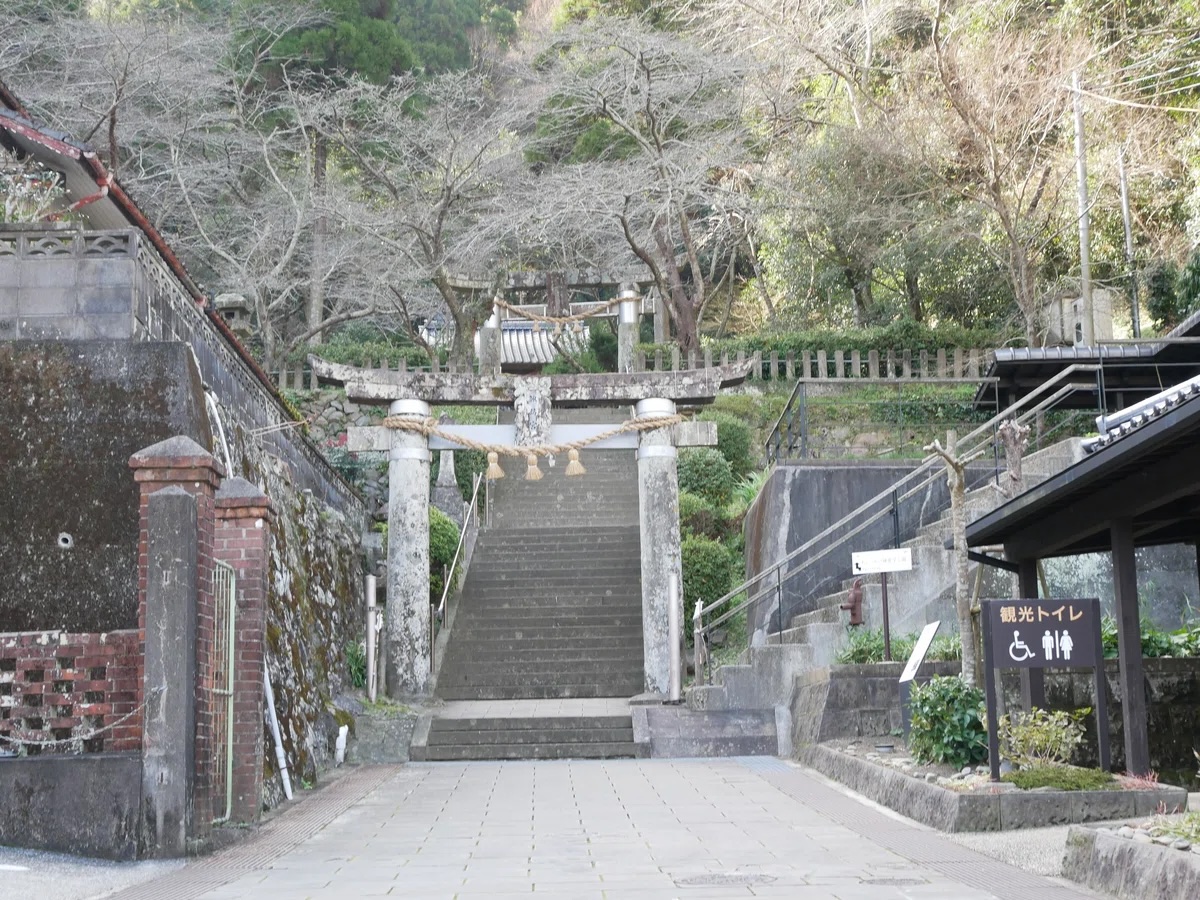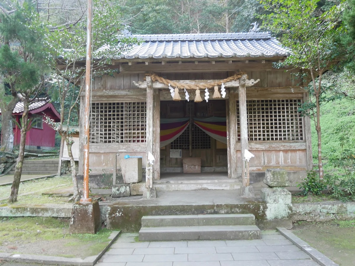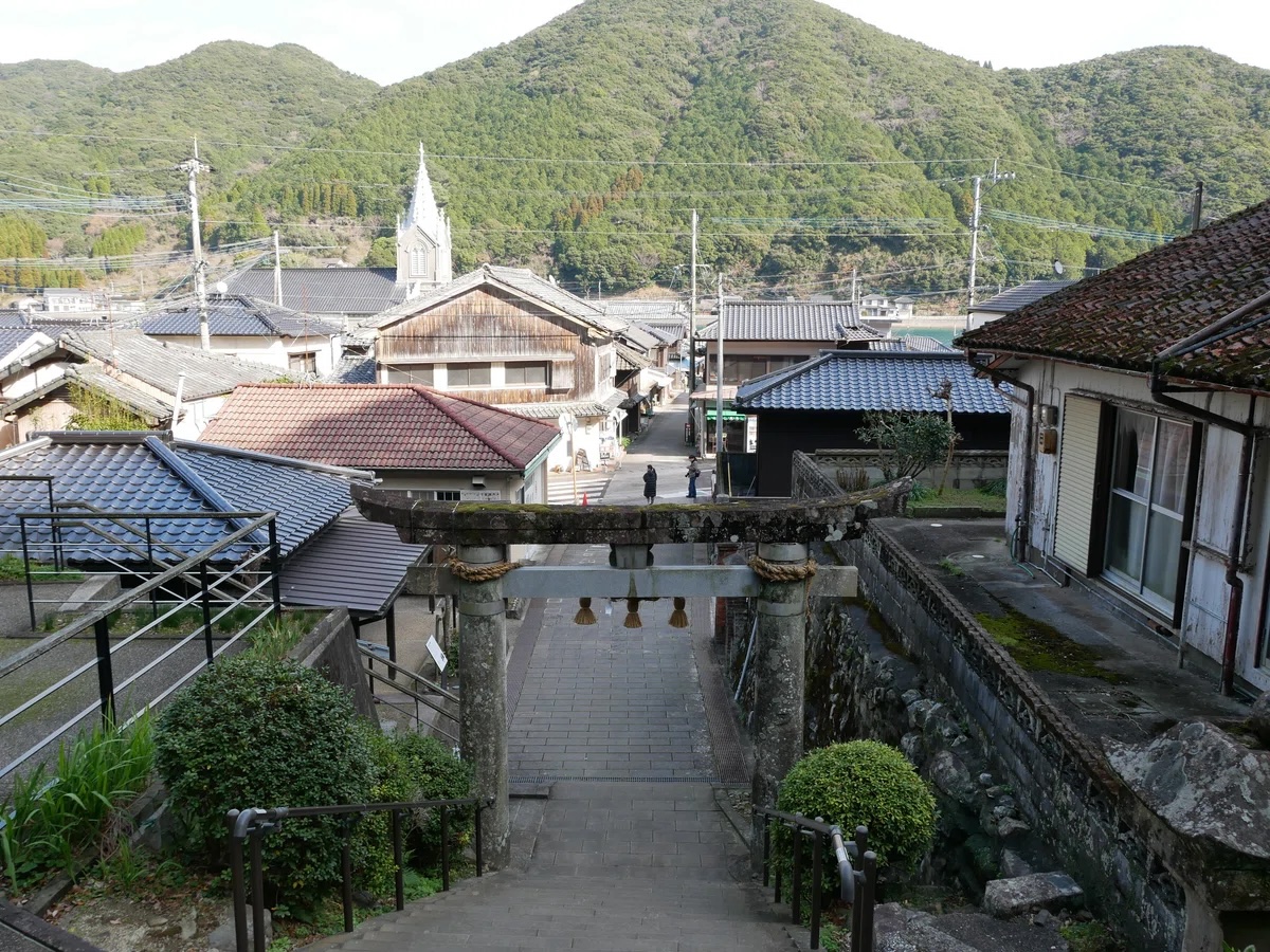 神社に登る階段の脇には崎津教会の修道女が住んでいた家が残されています。禁教令が解除された明治時代、崎津教会が建つ前はここに教会が建っていました。写真左端にマリア像が残されています。