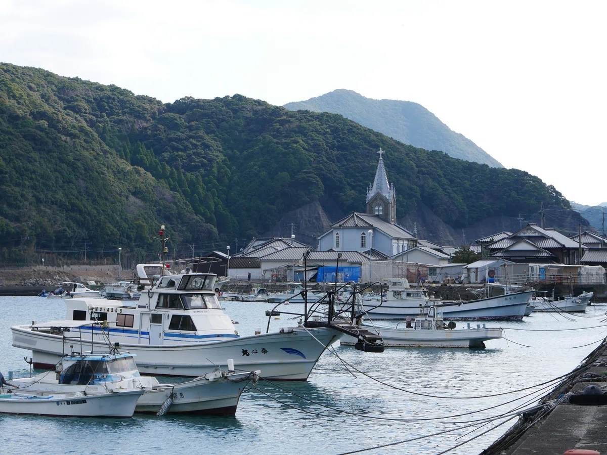 島の小さな漁村で250年以上もの間、神道などの影に隠れつつキリスト教信仰を続けてきた崎津集落。その苦労は筆舌に尽くしがたいものだったと思います。崎津教会は、今日もその苦難を癒すように船の向こうで集落の人々の幸せを見守っています。
