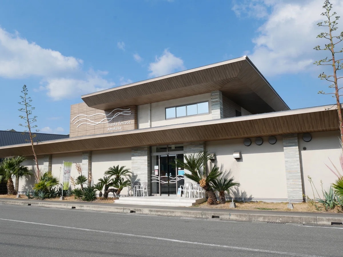 天草諸島は九州本土から大矢野島、永浦島、前島を経て天草上島まで五つの橋で繋がっています。天草五橋と呼ばれる橋から有明海、不知火海を眺めながらやってきたのは天草上島のリゾートマーケット「リゾラテラス天草」。シーサイドテラスで食事やコーヒーなどを飲んで小休憩をすることができるほか、天草名物のイルカウォッチングもここから船が発着しています。