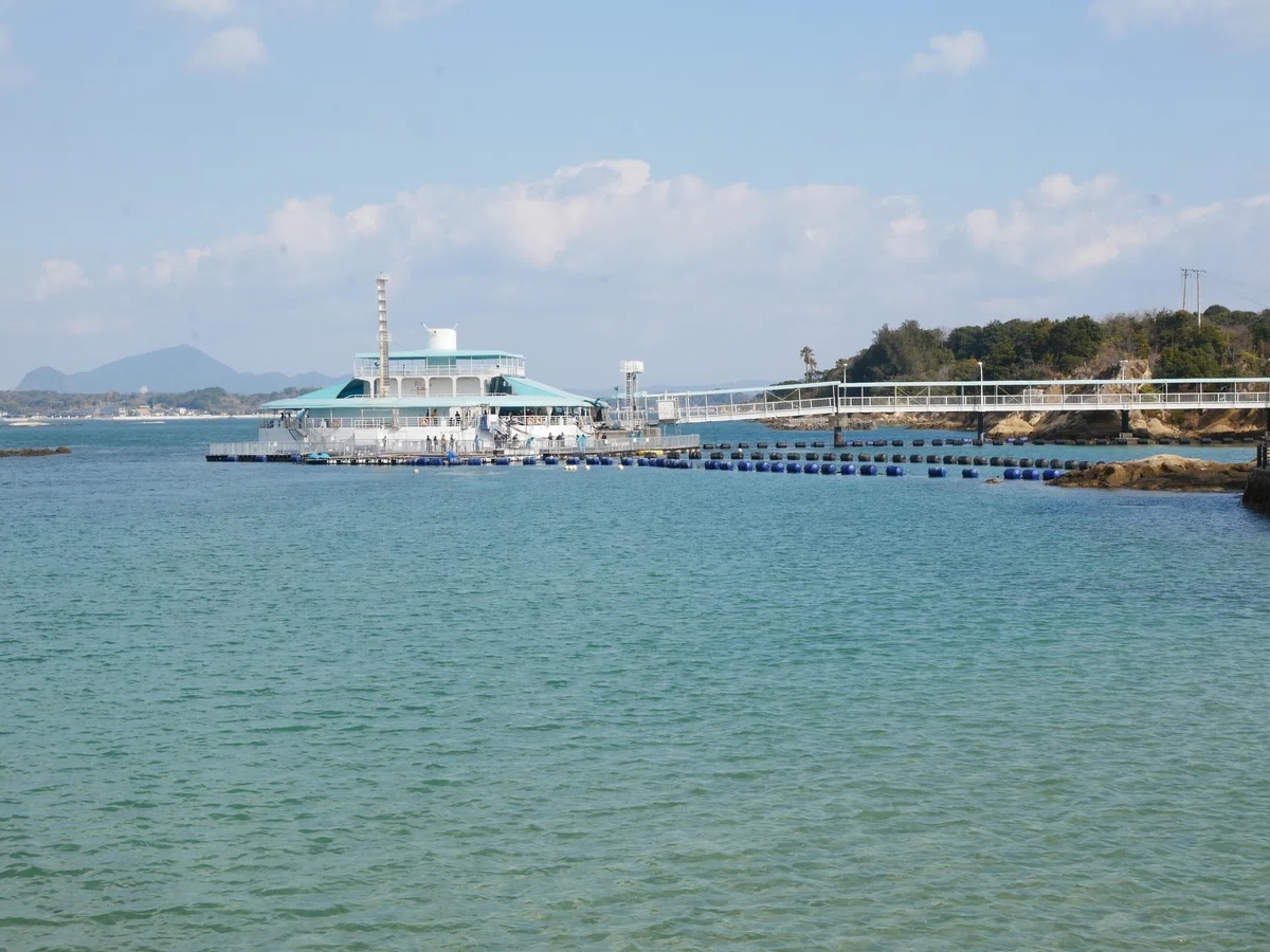西日本で唯一といわれる海中水族館シーサイドドーナツもここにあります。冬ということで人はそこまで多くなかったんですが、日曜日とあって家族連れがここでも見ることができるイルカを目当てにここを訪れていました。