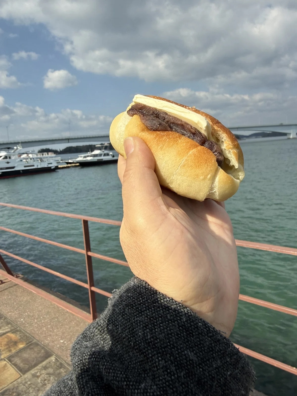 この日は風もおだやかで気持ちがよかったので、海を見ながら塩パンをいただきました。プレーンの塩パンもおいしかったですが、一番のお気に入りはあんバターでした。あんことバターや塩って相性がいいんですよね。ちなみにここには帰りも寄っており、2日連続で塩パンを昼食にしました。