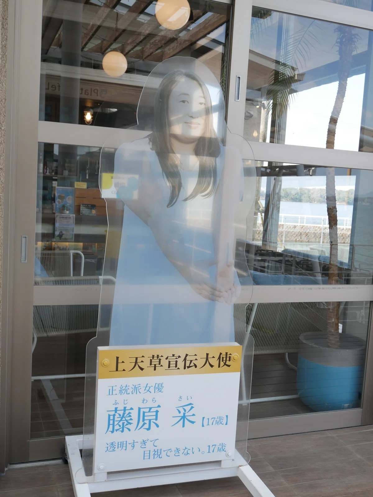 ちなみにリゾラテラス天草には、上天草市の宣伝大使、藤原采のパネルがありました。上天草で映画を撮影した縁で宣伝大使をしているようです。それにしても藤原さん、誰かに似ているような……。まぁいいか。