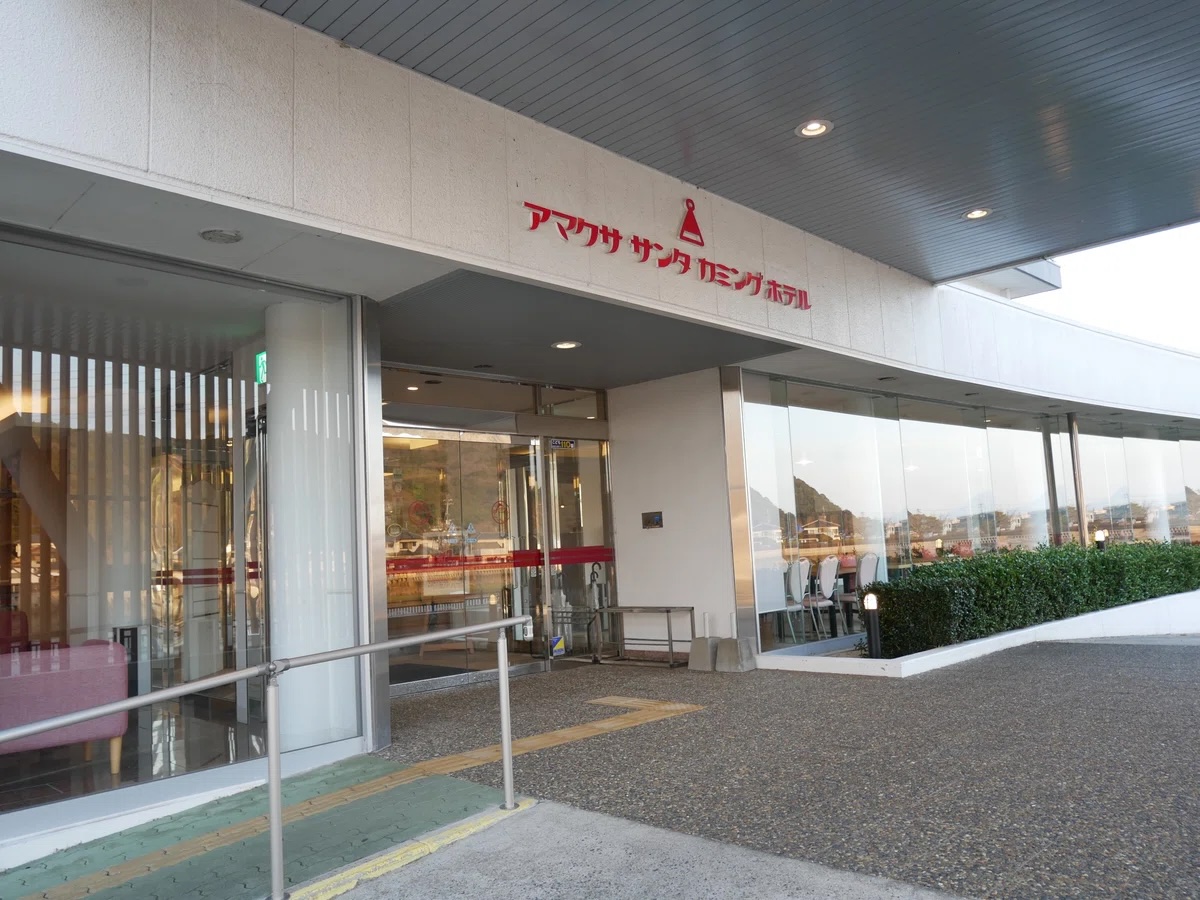 熊本駅から車を飛ばし、天草の西端までドライブをしたあとホテルに到着しました。今回のお宿はサンタカミングホテルといいます。このホテルちょっとした特徴があります。