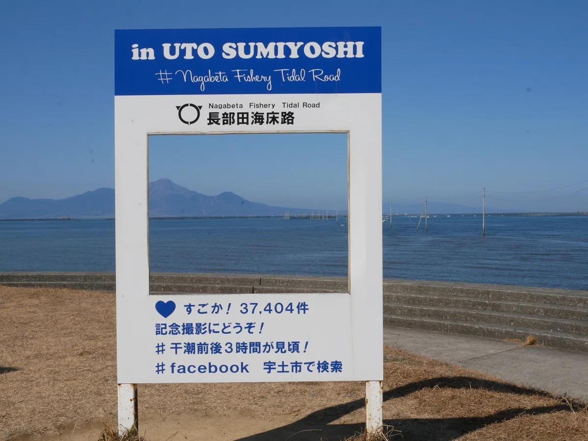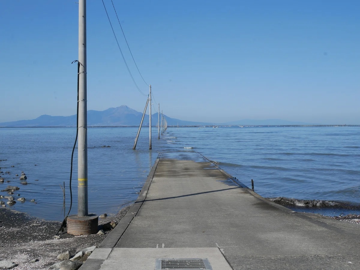 その道中、どうしても寄っておきたい場所がありました。それが宇土市の長部田海床路。宇土半島の北岸にある漁師のためにつくられた海に突き出した長い長い道です。