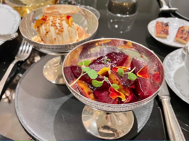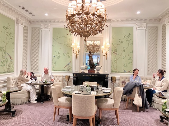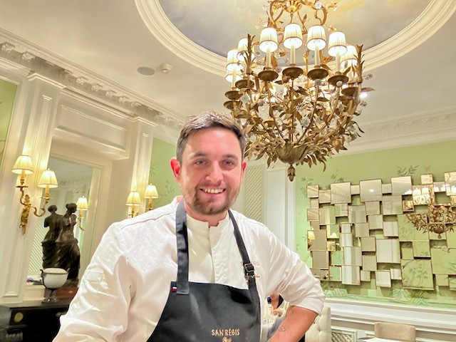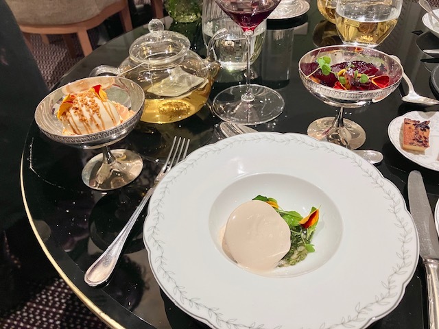 モンテーニュ通りの裏に佇む瀟洒なラグジュアリーホテル「サン・レジ」。ここは、トップパティシエール、ジェシカ・プレアルパトのティータイムが有名(この間、ラ・リストで世界最高アフターヌーンティーに選ばれてた)だけど、今日はレストラン「レ・コンフィダンス」へ。9月から新しいシェフが着任しているそう。