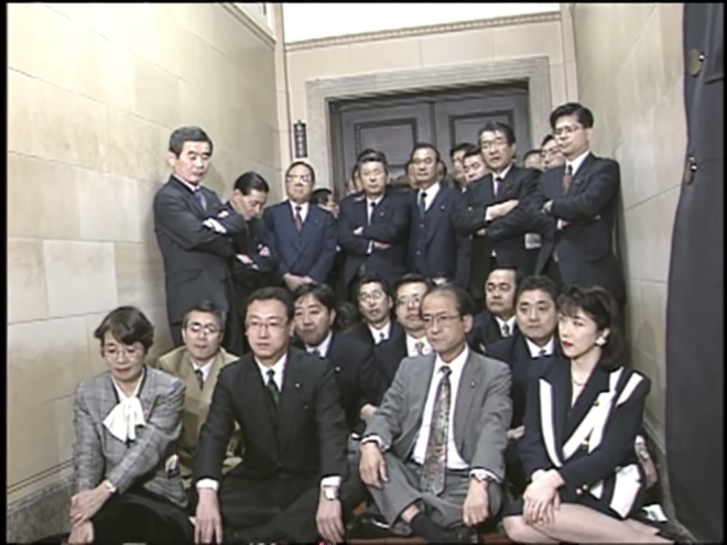 住専処理法案に反対する新進党の座り込み
