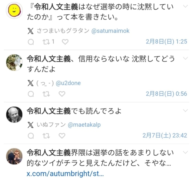 私は「令和人文主義」という言葉を、特定の集団やメンバーシップを指す言葉として使ったことは一度もありません。……なので、誰かが「私は令和人文主義者です」と自称しているわけではありません