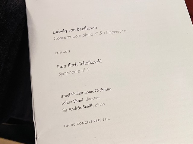ベートーベン、ピアノコンツェルト5番、ソリストはサー・アンドラーシュ・シフ。チャイコフスキー、シンフォニー5番。とてもいいプログラム。