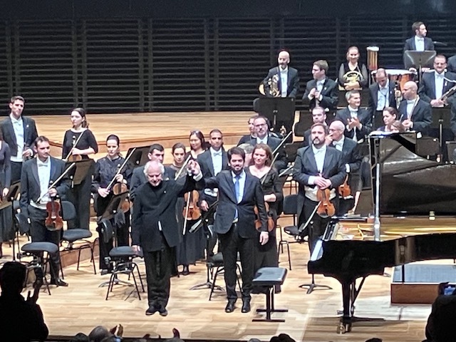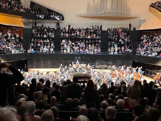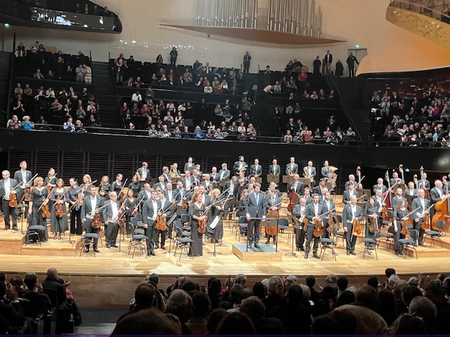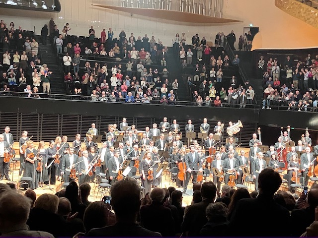 イスラエルのガザ攻撃やこのオーケストラのプロパガンダとしての側面に対し、数日前から公演中止を迫る文章が出るなど不穏な中、フィルハーモニーの前には警官いるし、セキュリティもいつもより厳しい。客席にも警備員多く、ピリピリな雰囲気の中、20分遅れで開演。