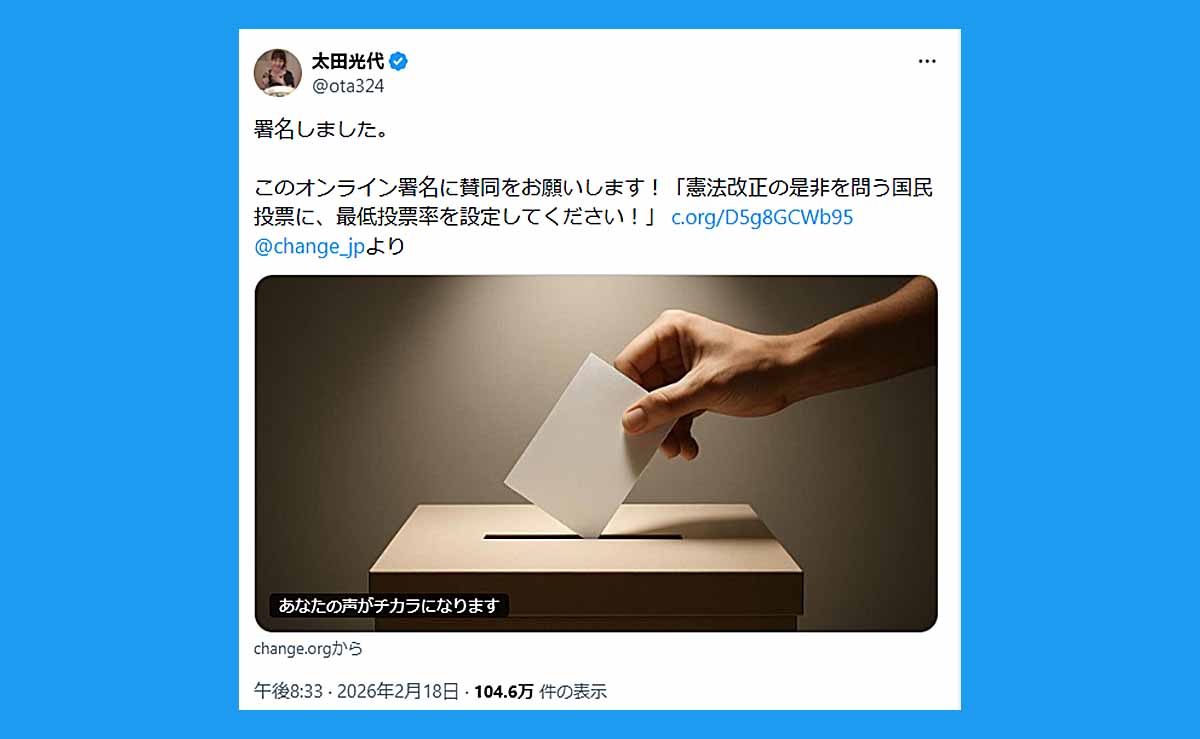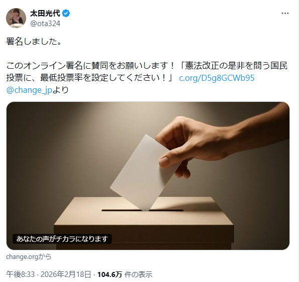 このオンライン署名に賛同をお願いします!「憲法改正の是非を問う国民投票に、最低投票率を設定してください!」 https://c.org/D5g8GCWb95