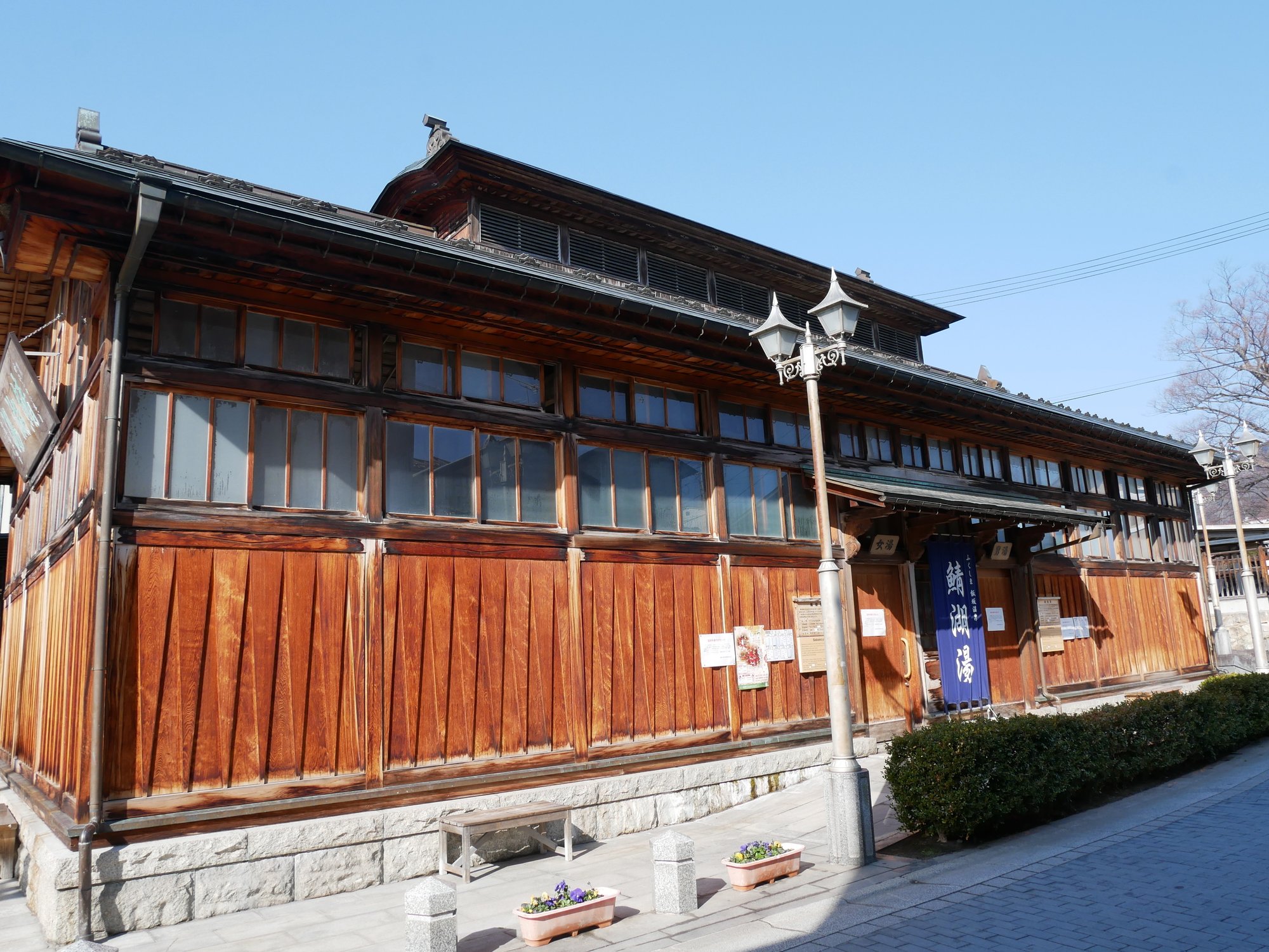 駅から町の中心部に歩いていきます。飯坂温泉のランドマーク的な存在なのが、こちらの鯖湖湯。松尾芭蕉も浸かった湯として知られ、かつては日本最古の木造共同浴場と言われていましたが、平成5年に今の建物に建て替えられました。