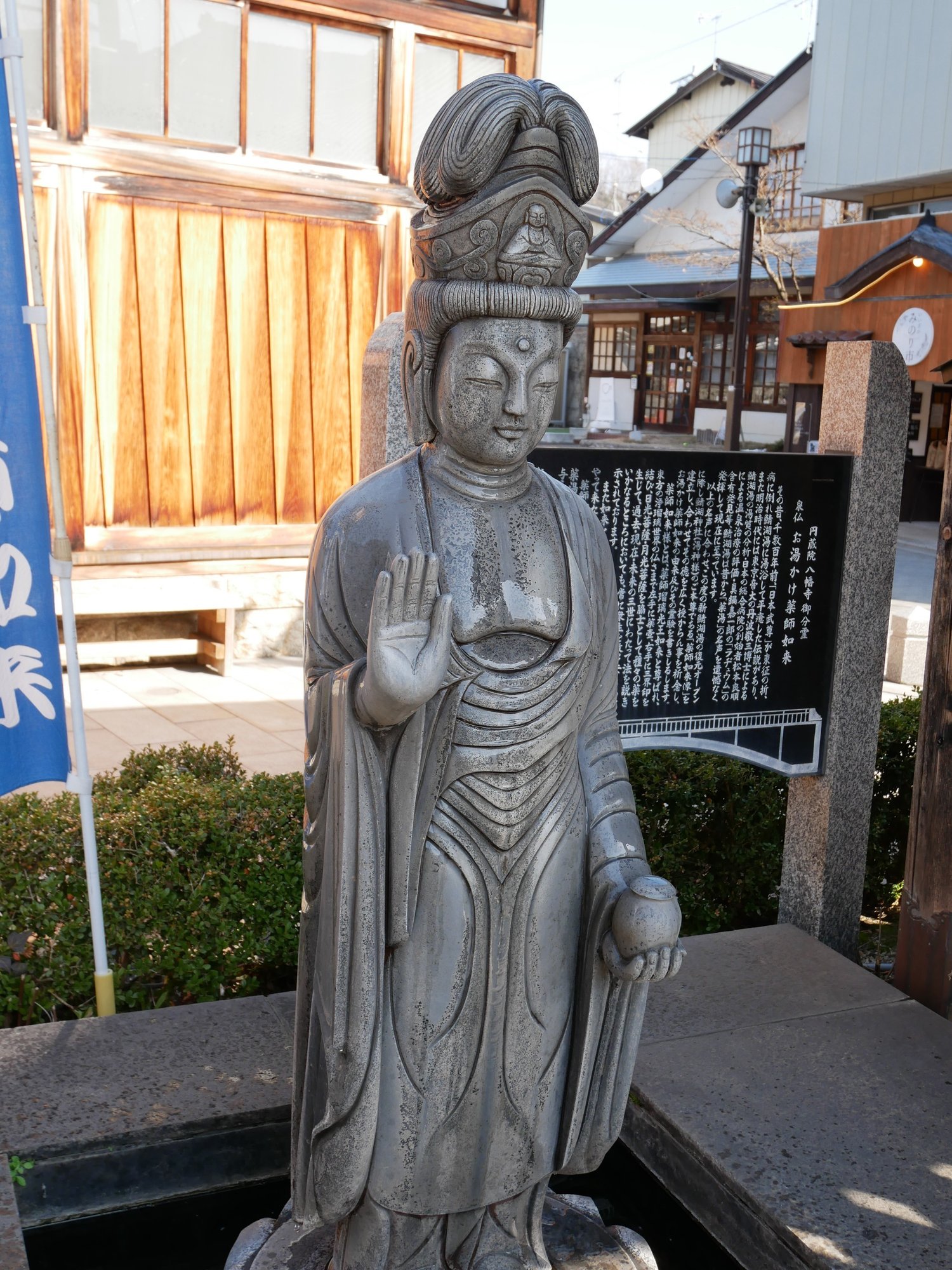 こちら、鯖湖湯に隣接する場所に立つ、温泉地蔵。温泉の湯をかけるとご利益があるそうです。